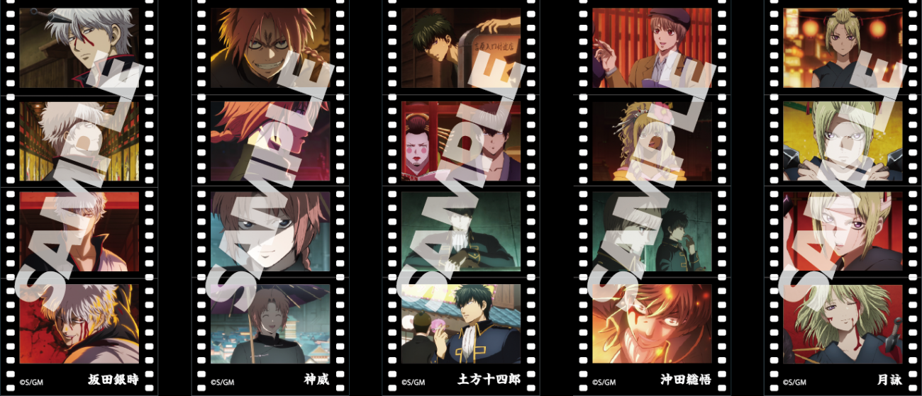 入プレ争奪戦キャラクター総選挙で上位1位〜5位を獲得したキャラクターたちがフィルム風シールになって登場。死んだ魚の目をした主人公・坂田銀時、神楽の兄であり宇宙海賊春雨第七師団団長・神威、とある目的を持って吉原に潜入する真選組鬼の副長・土方十四郎、同じく吉原に潜入しギャル姿を披露する真選組一番隊隊長・沖田総悟、そして吉原を守る百華の頭領・月詠の名シーンが切り取られている。