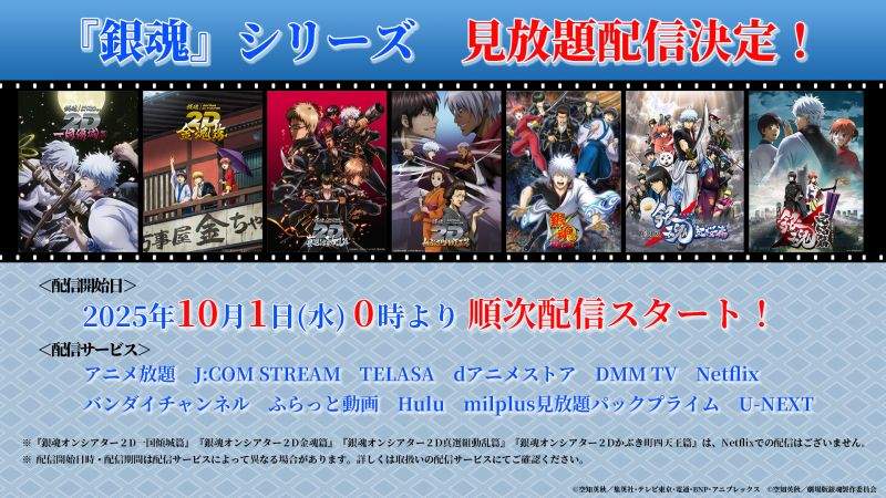 『3年Z組銀八先生』のTV放送を記念して、新たに『銀魂』シリーズ7作品の見放題配信が決定致しました!